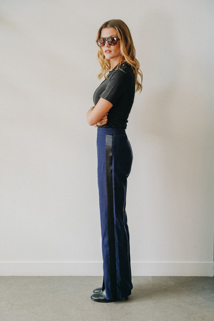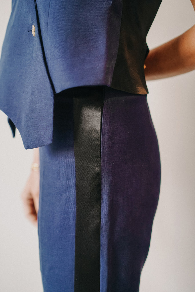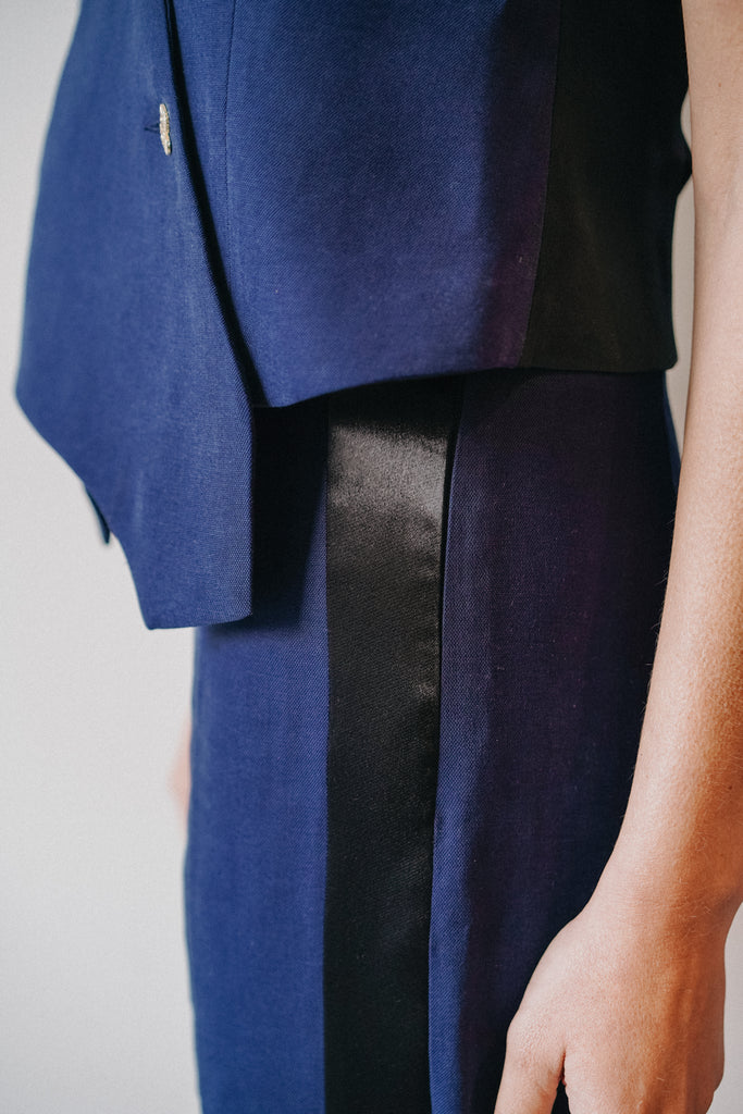 ♡ Jeu de matières contrastées entre un tissu bleu mat et une texture satinée pour une touche d’originalité.