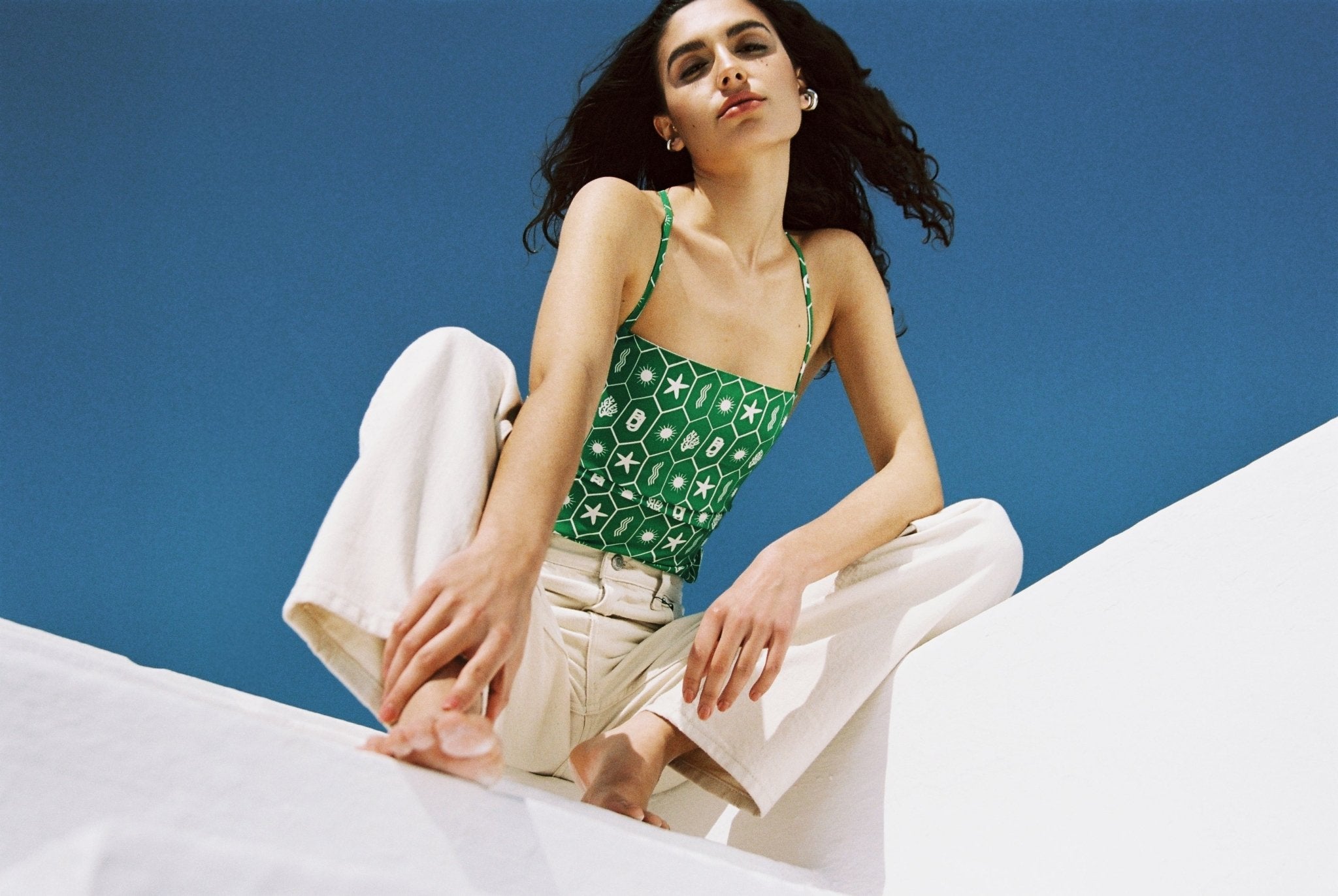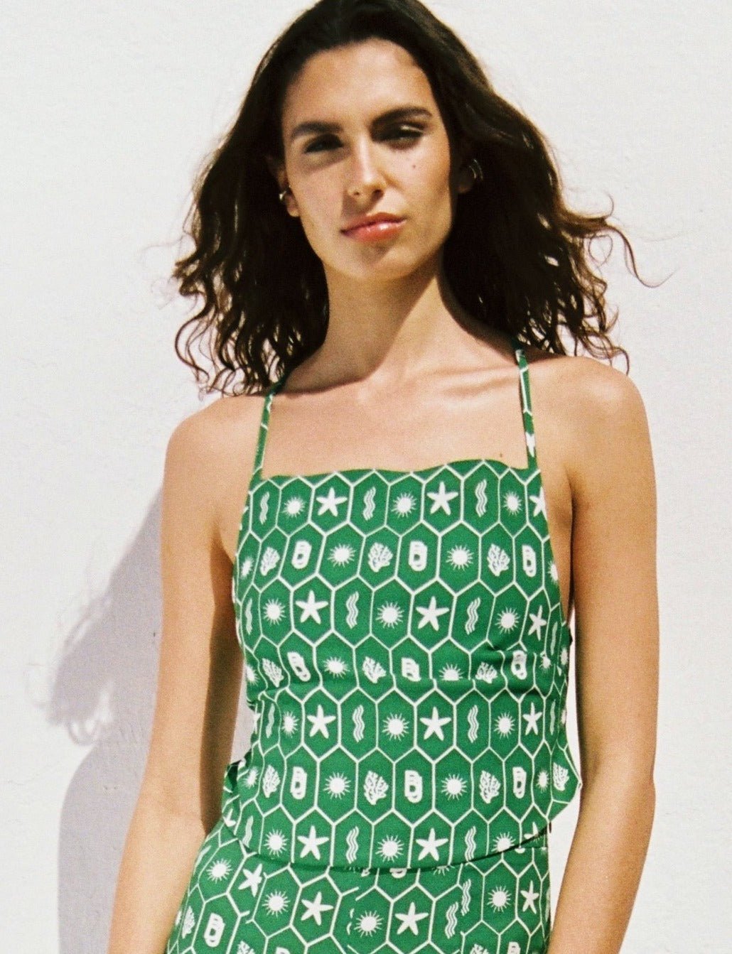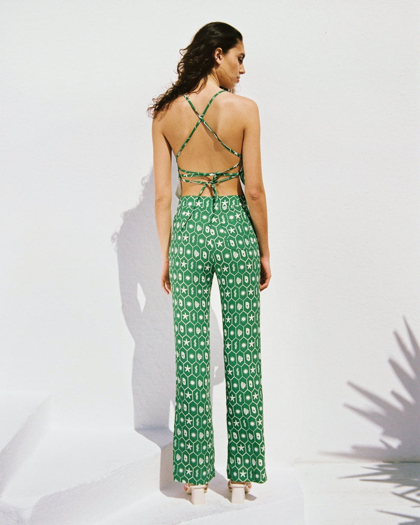 Top Lacet Imprimé Madrague Vert Guacamole