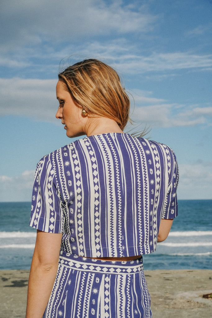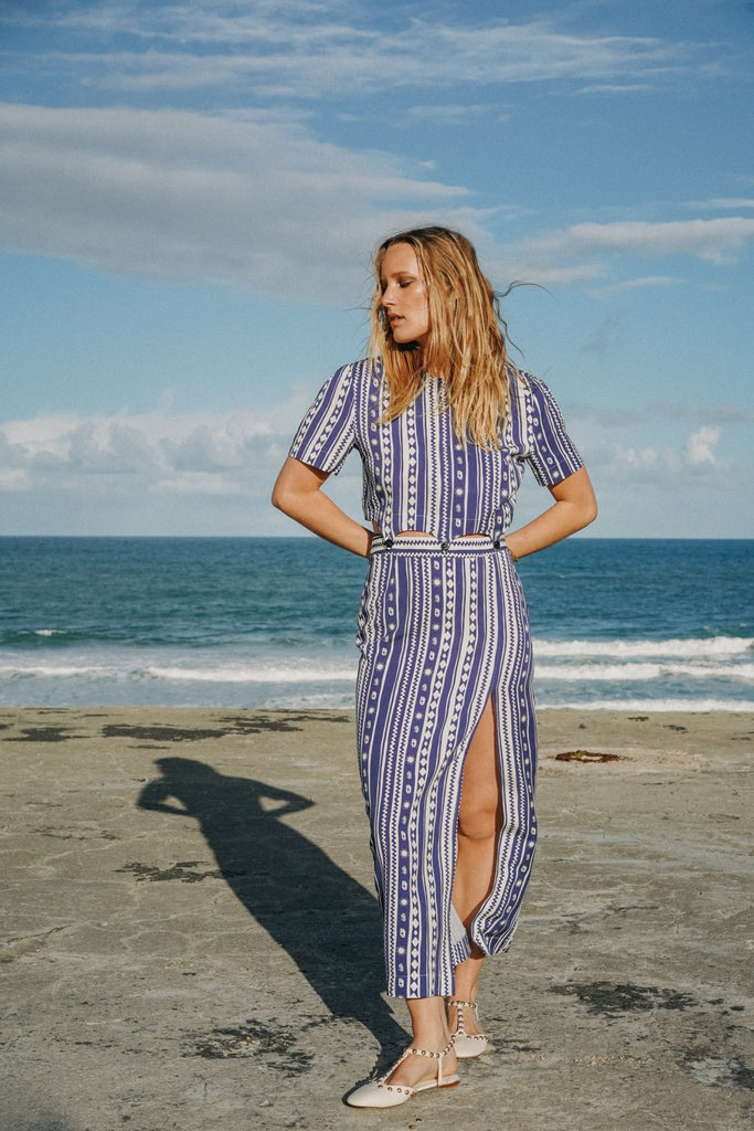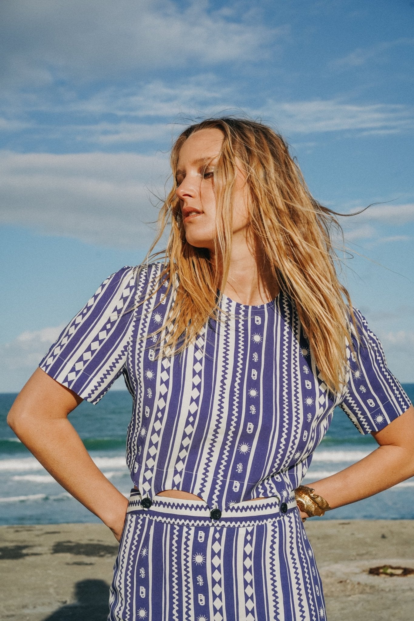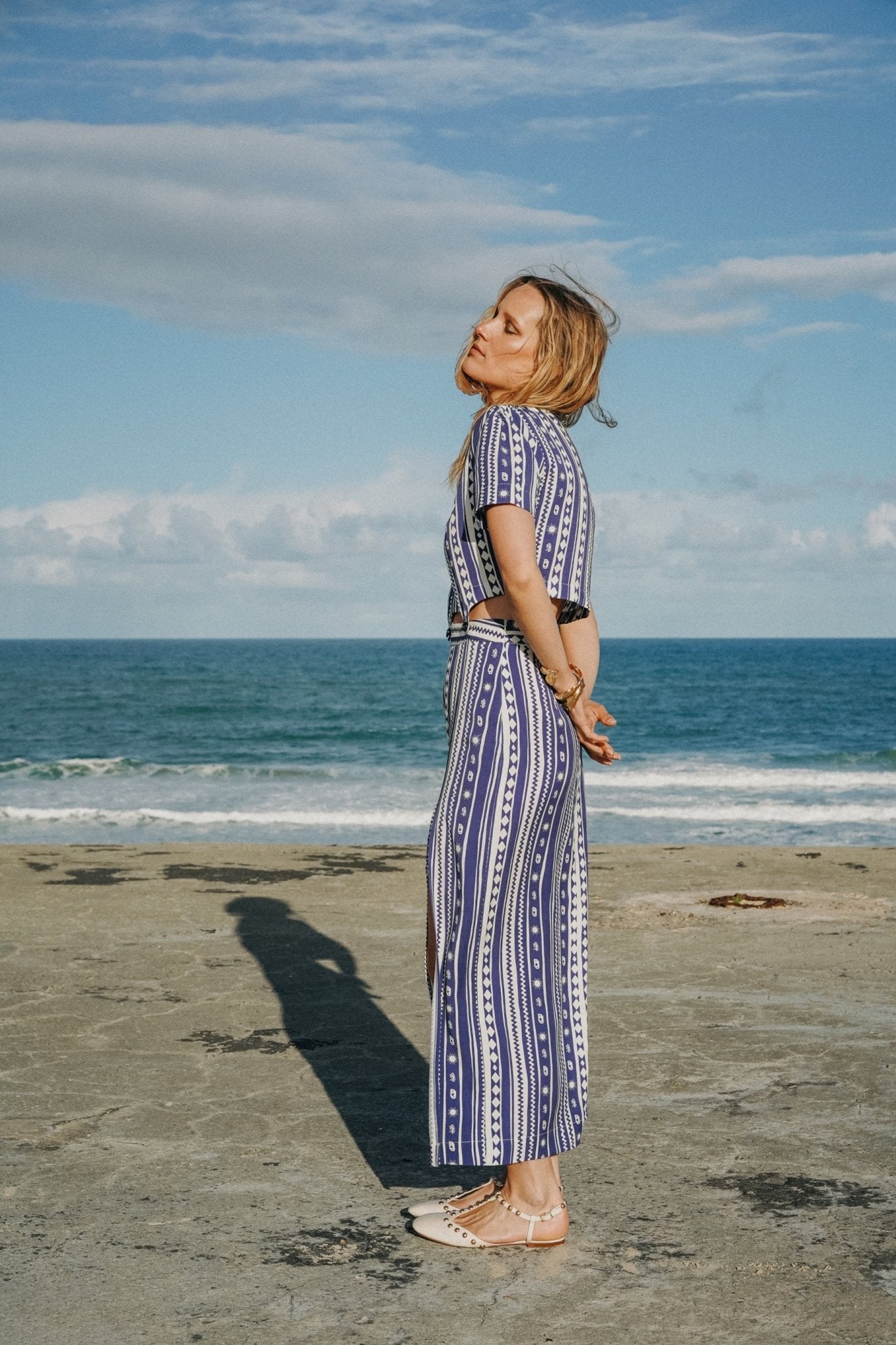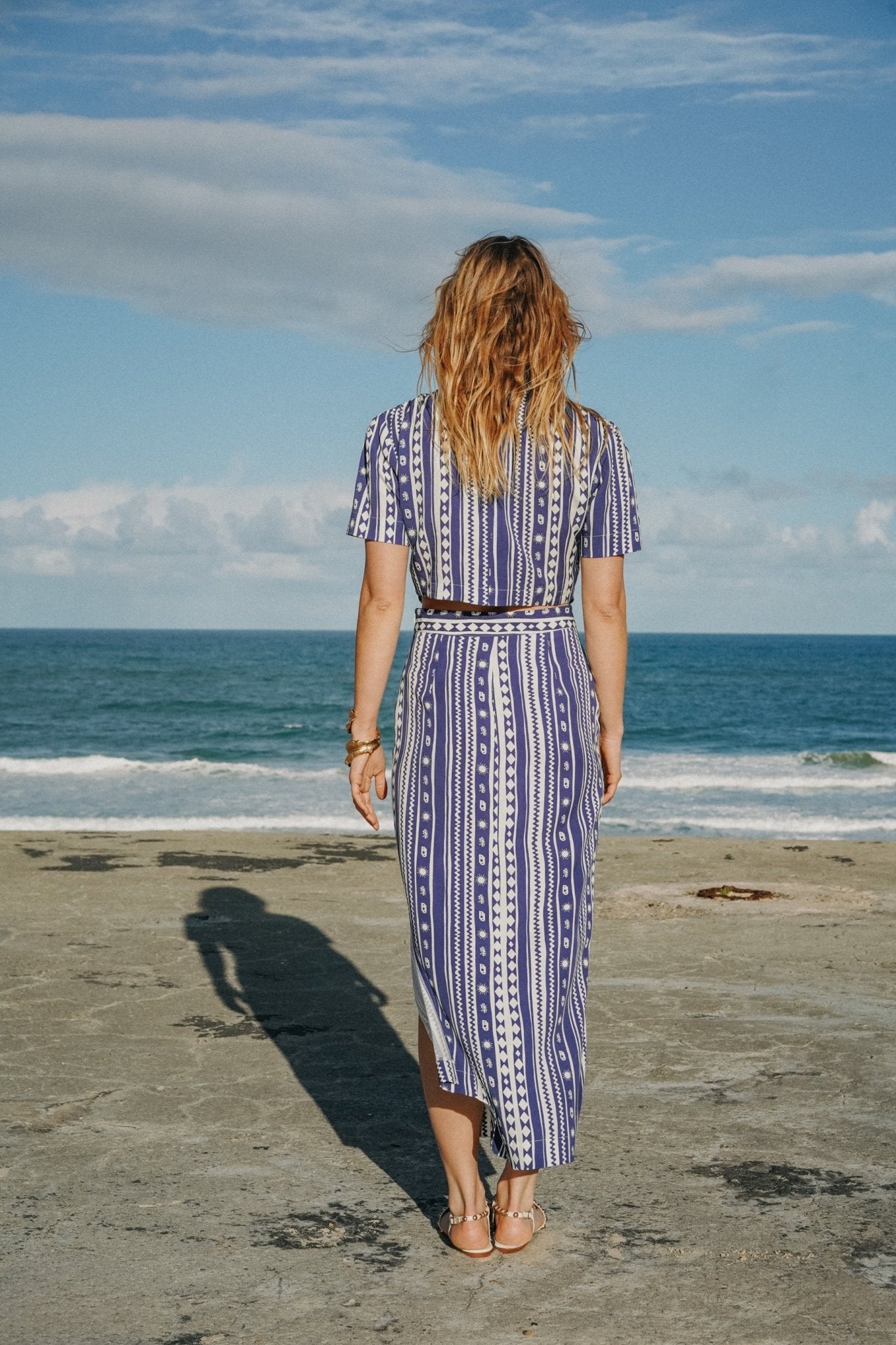 Robe Cagnard 2 en 1 Imprimé Horizon Bleu et Blanc